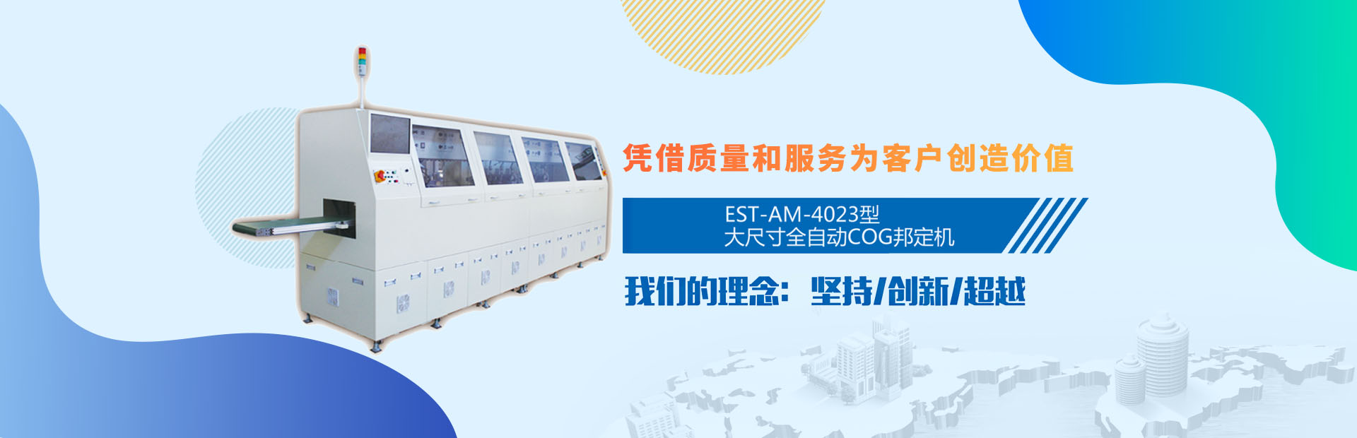 • 質(zhì)量保證 主要產(chǎn)品有1-26寸AOI粒子壓痕檢測(cè)機(jī)、1-26寸系列全自動(dòng)COG邦定機(jī)(國(guó)家立項(xiàng)項(xiàng)目)、中大尺寸COG返修機(jī)、1-26寸系列全自動(dòng)FOG熱壓機(jī)